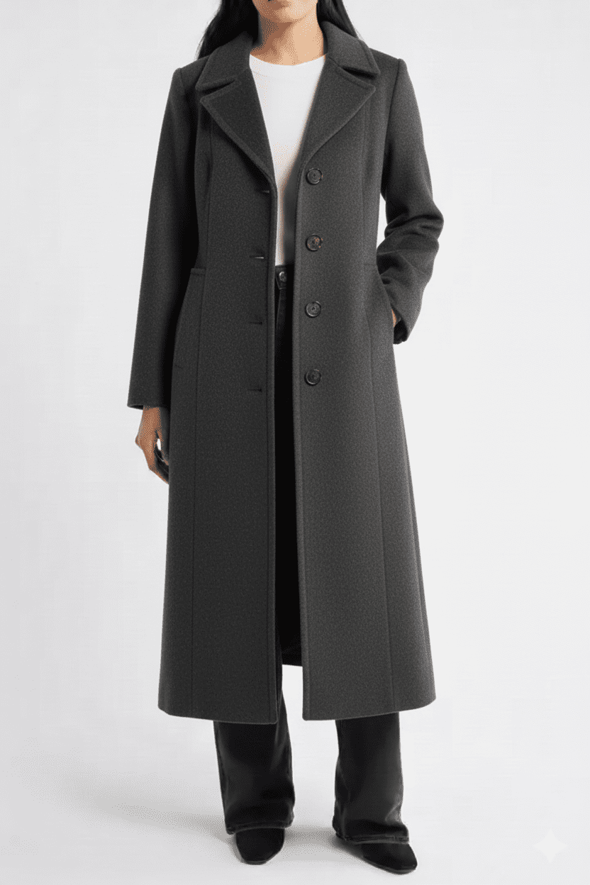 Architectural Fit & Feel Our overcoat is precision-cut to accentuate the shoulders while tapering slightly at the waist. The “plain-finish” fabric ensures a smooth, high-end look without distracting textures, keeping your outfit crisp and professional.
